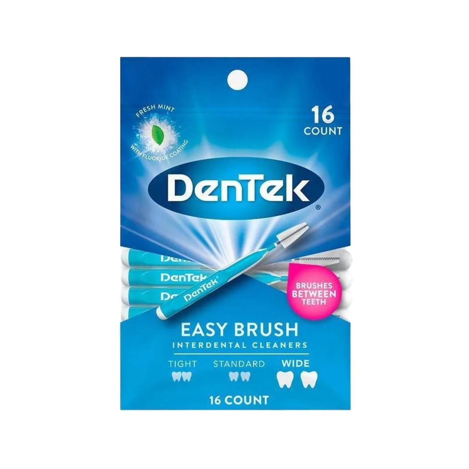DenTek Easy Brush Wide 16ct es tu aliado perfecto para una limpieza interdental profunda y cómoda, especialmente si tienes brackets, puentes o espacios dentales más amplios. Su diseño cónico de alta resistencia y alambre ultra flexible permite eliminar la placa donde el cepillo tradicional no llega, cuidando tu esmalte gracias a su recubrimiento avanzado de flúor.