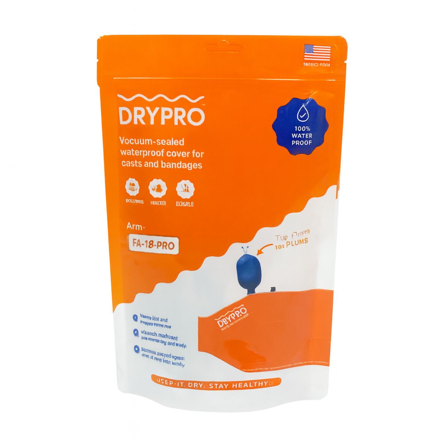 - Una vez que se elimina el aire, Drypro no se puede quitar involuntariamente y el agua no dañará su yeso u otra herida.