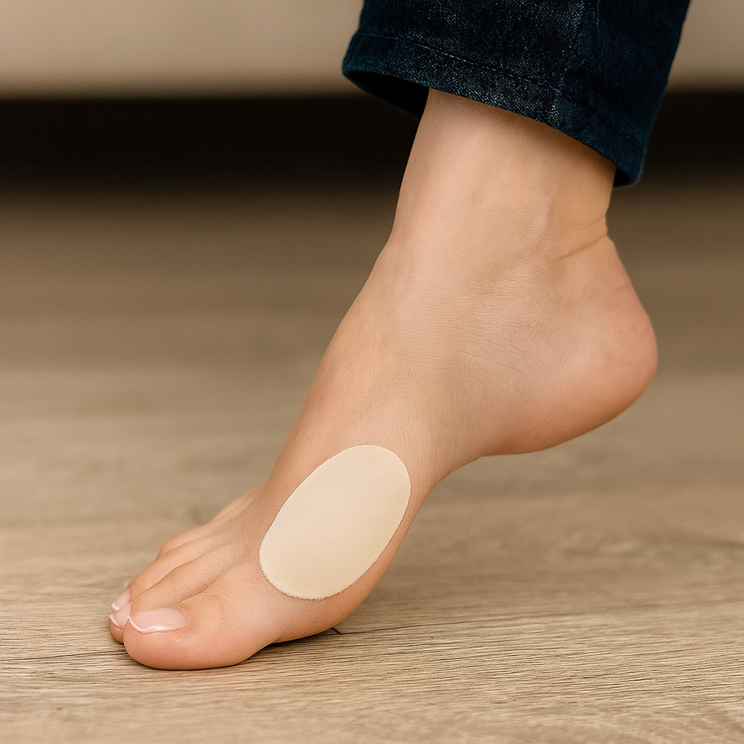 Este protector está especialmente diseñado para aliviar los dolores causados por la presión del calzado en los juanetes. Su superficie autoadhesiva garantiza que el protector se mantenga firmemente en su lugar, proporcionando comodidad y alivio duradero.