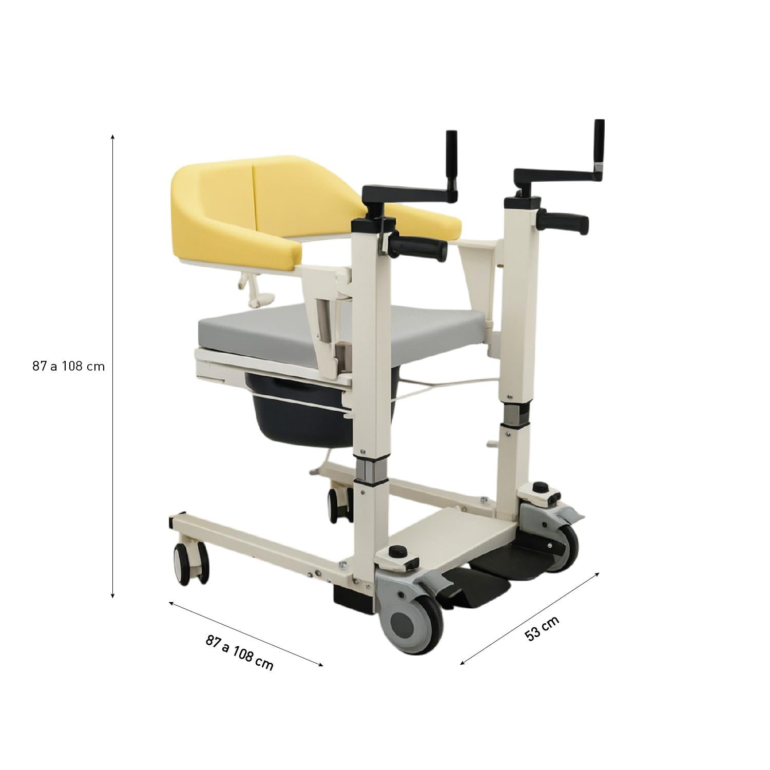 La silla de transferencia hidráulica es una solución práctica y segura para el traslado de personas con movilidad reducida. Diseñada para facilitar el movimiento diario, permite el acceso cómodo a la cama, sillones, inodoros y otras áreas esenciales del hogar. Su sistema de ajuste de altura hidráulico brinda mayor comodidad tanto para el paciente como para el cuidador, reduciendo el esfuerzo físico durante el traslado.